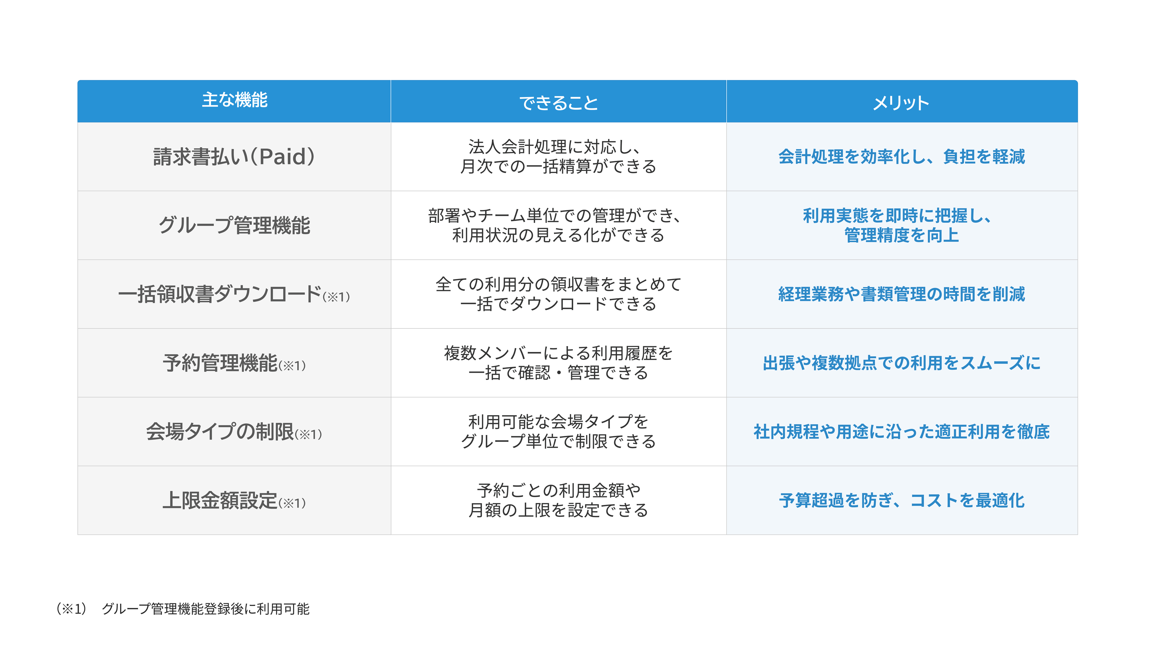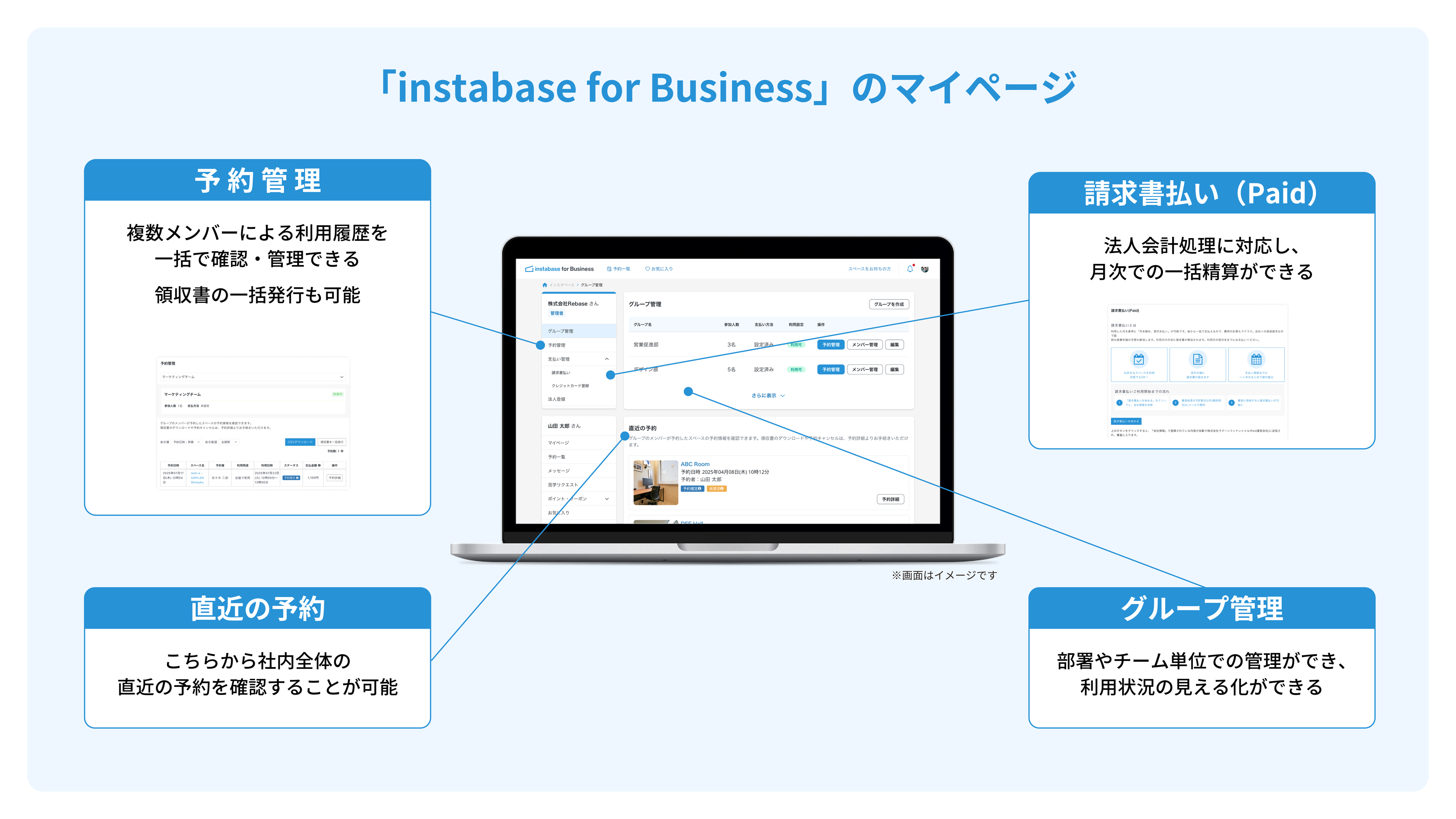 これまでインスタベースを利用したことがある方はもちろん、まだ利用されていない方にとっても、例えば「予約や支払いをまとめて管理したい」「会計処理の負担を減らしたい」「全国どこでも同じ仕組みで使えるレンタルスペースサービスを探している」など、法人担当者が抱えるさまざまなニーズに応え、法人利用の課題をスムーズに解決します。